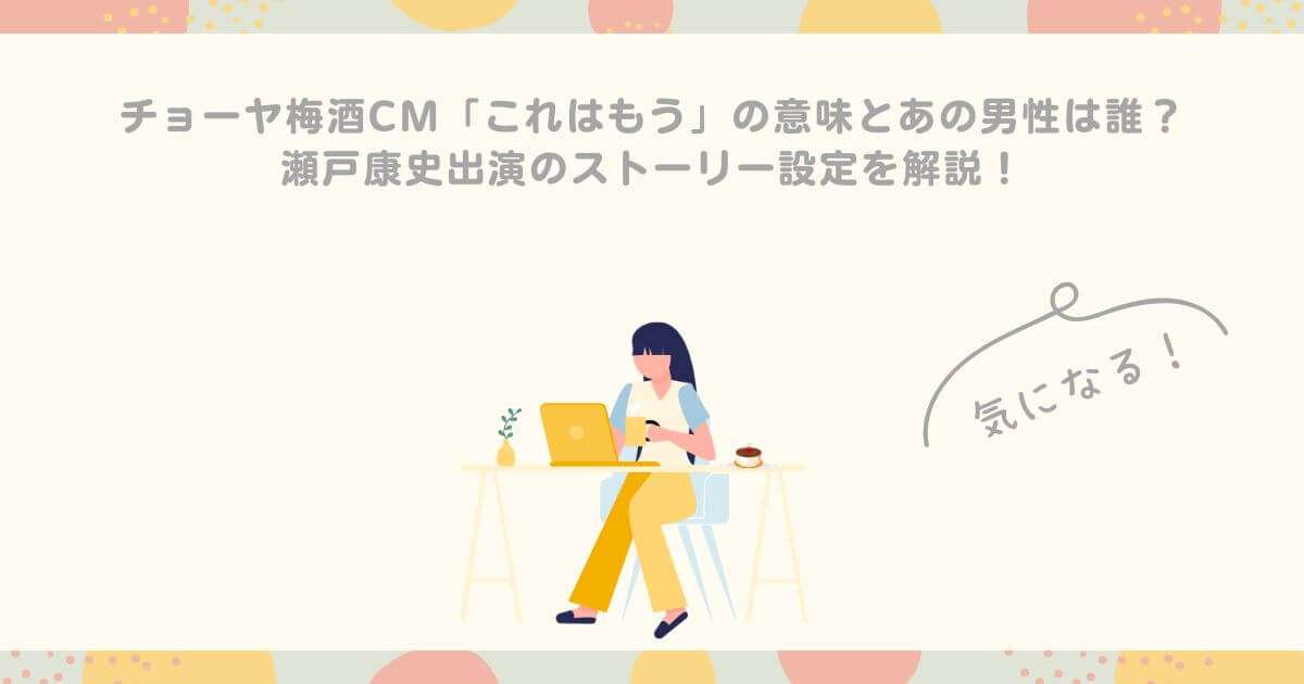 この記事では、チョーヤ梅酒のCMのキャッチコピーに込められた意味や出演者の正体、瀬戸康史さんが伝えるチョーヤ梅酒の魅力的な世界観まで、分かりやすく解説します。