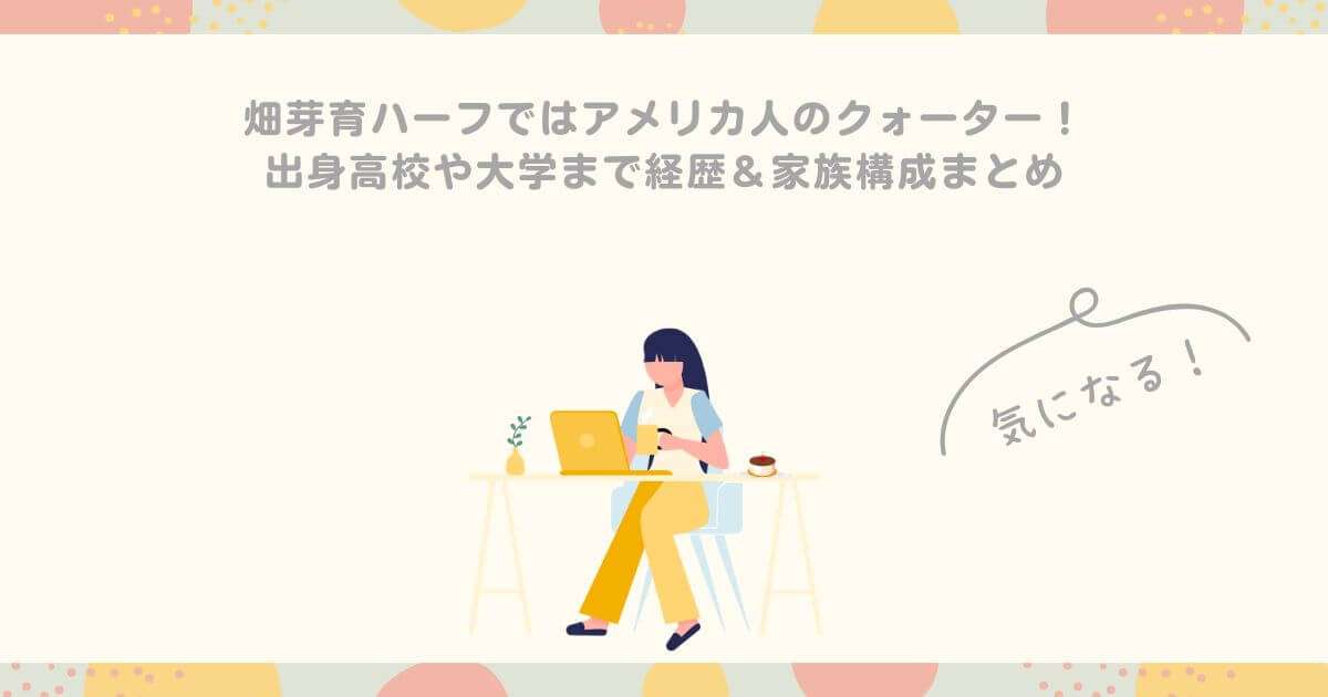 畑芽育さん自身は日本生まれ日本育ちで、国籍も日本となっており、畑芽育さんの母親か父親のどちらかがアメリカ人とのハーフということになります。