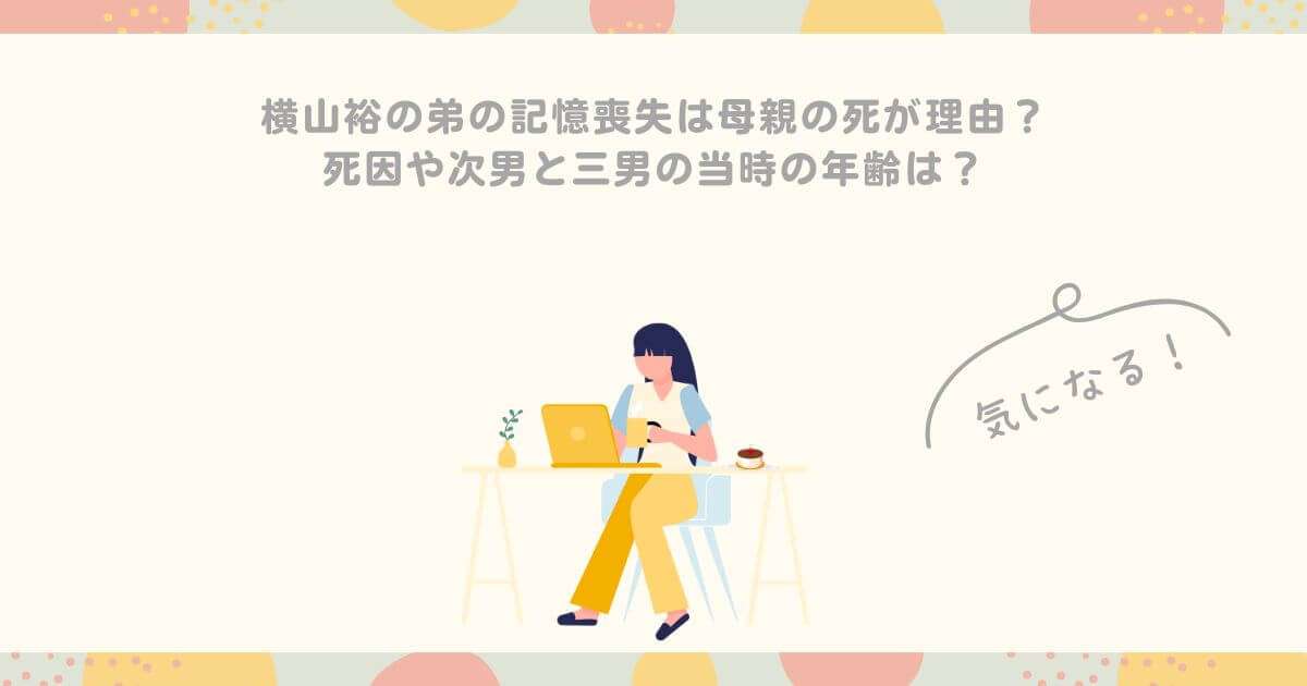 この記事では、横山裕さんの母親の死にまつわる背景や、弟たちの当時の年齢などについて解説していきます。