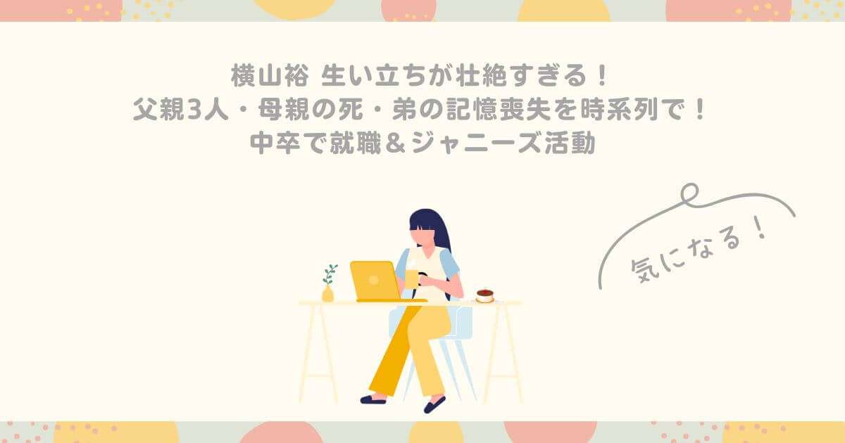 横山裕さんには父親と呼べる人が3人いた複雑な家庭環境に育ち、さらに母親の急死や弟の記憶喪失といった過酷な出来事にも直面しています。