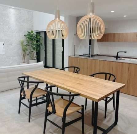 パンサー尾形さんの新居の2階には広いリビングダイニングとキッチンがあり、天井が高く開放感のある空間で、屋上には家族みんなが楽しめるスペースも設けられています。