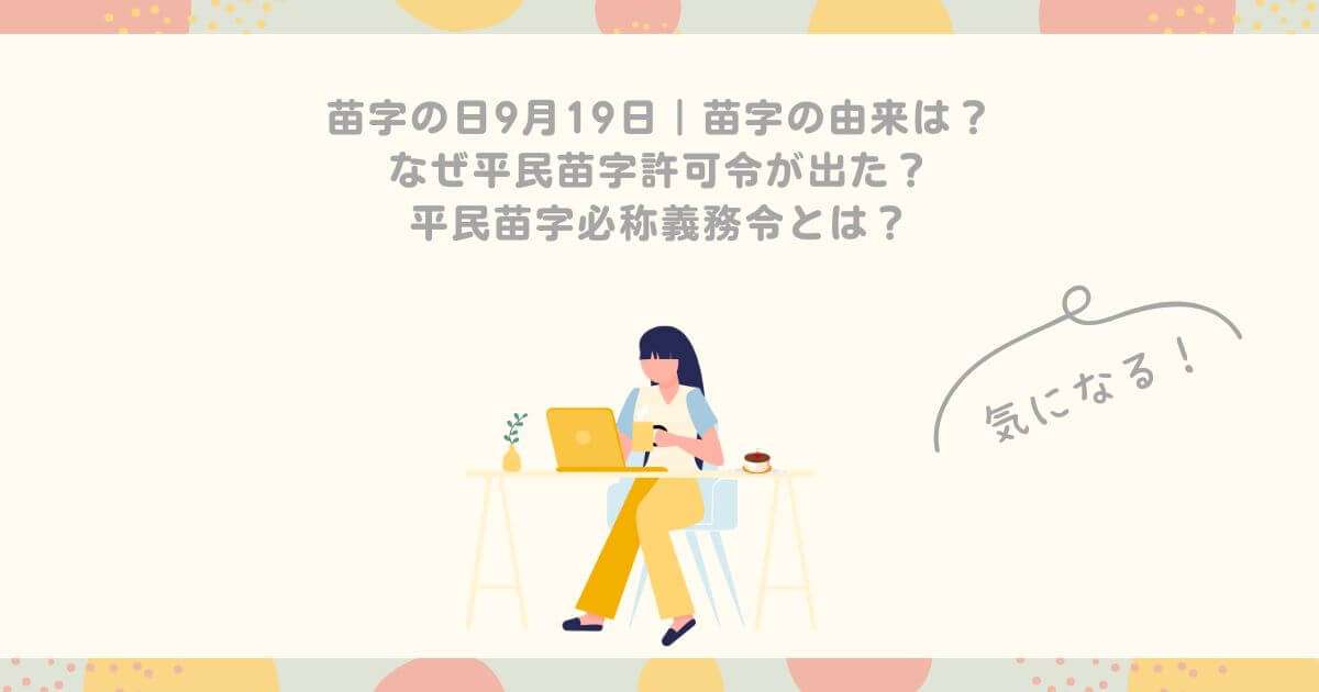 苗字の日9月19日は、明治3年(1870年)に「平民苗字許可令」が出されて平民も苗字を持つことができるようになった歴史的な日です。