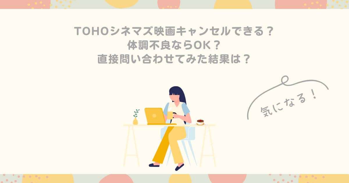 新型コロナウイルスが5類変更となって以降は、体調不良等で映画チケットをキャンセルすることができないのか不明だったため、TOHOシネマズに問い合わせてみました。
