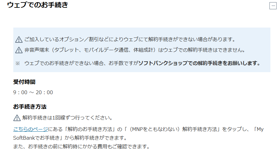 My Softbankにログインできない回線、音声通話ができない回線は、オンライン(ネット)で解約手続きをすることができないため注意が必要です。