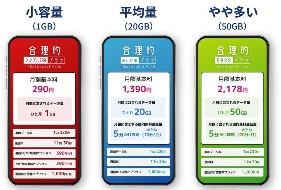 • 合理的みんなのプラン:一般的な利用頻度の方で、他社の3~4GBでは足りない方向け
