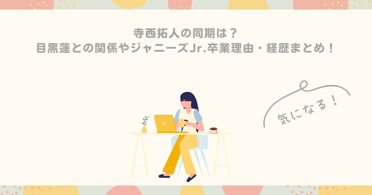 今回は、寺西拓人さんのジャニーズ時代の同期や、親友として知られる目黒蓮さんとの関係、そしてジャニーズ卒業の理由に迫ります。